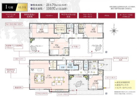 | セールスコメント | ≪Point≫ ◆4LDK ◆対面式キッチン ◆床下収納 ◆全居室収納 ◆南面バルコニー ◆並列駐車2台可能 ◆太陽光発電 ◆長期優良住宅 |