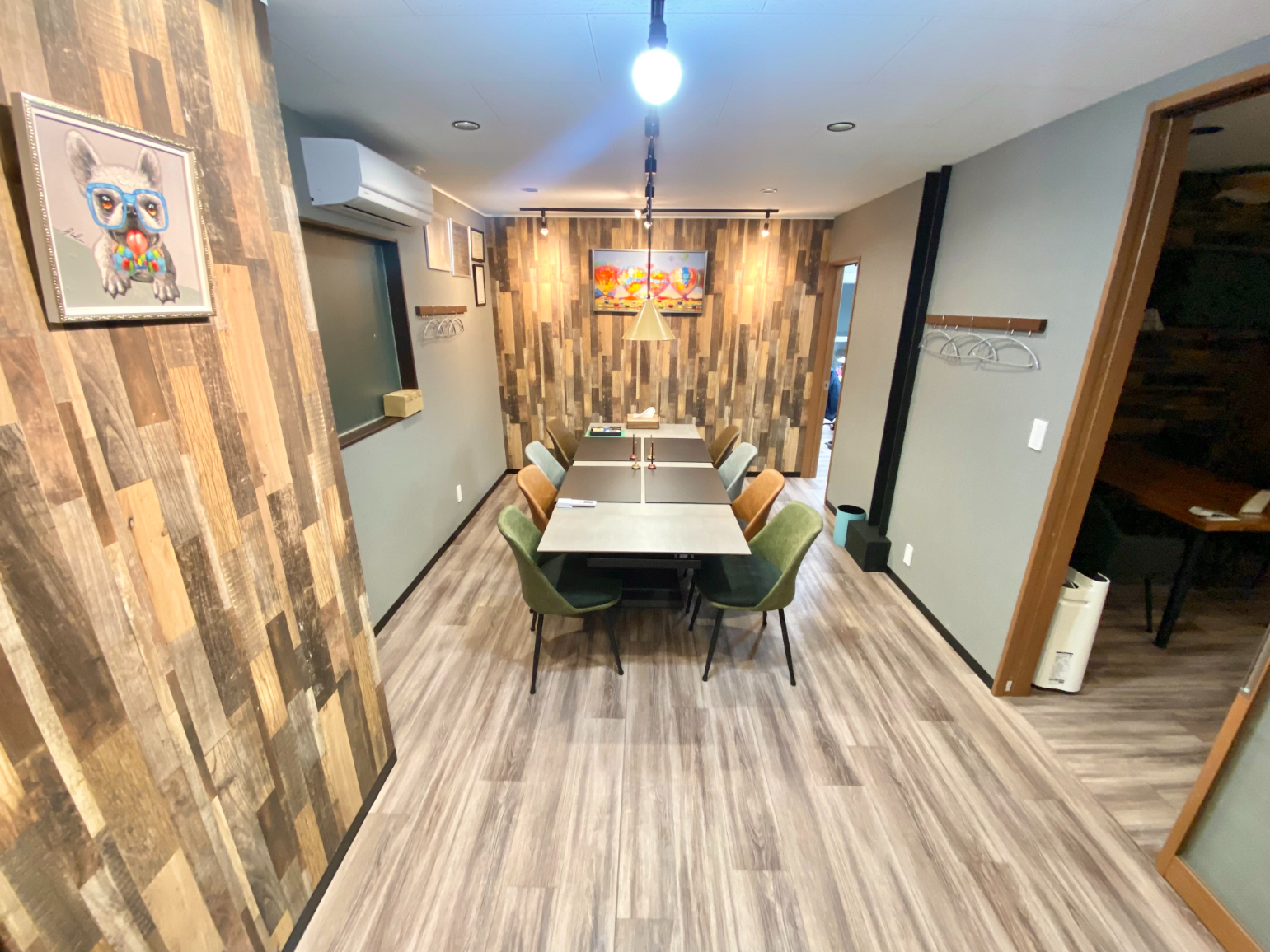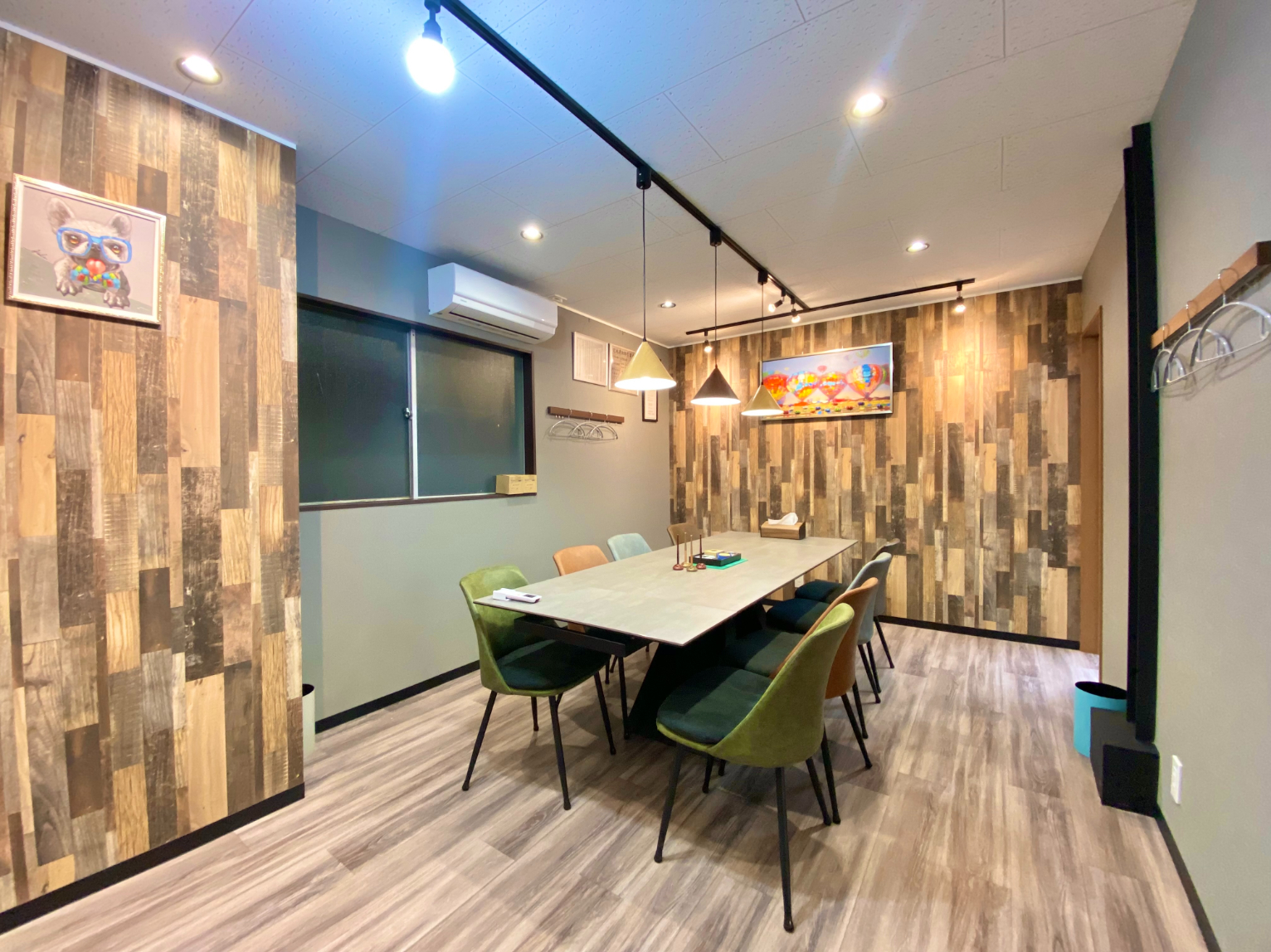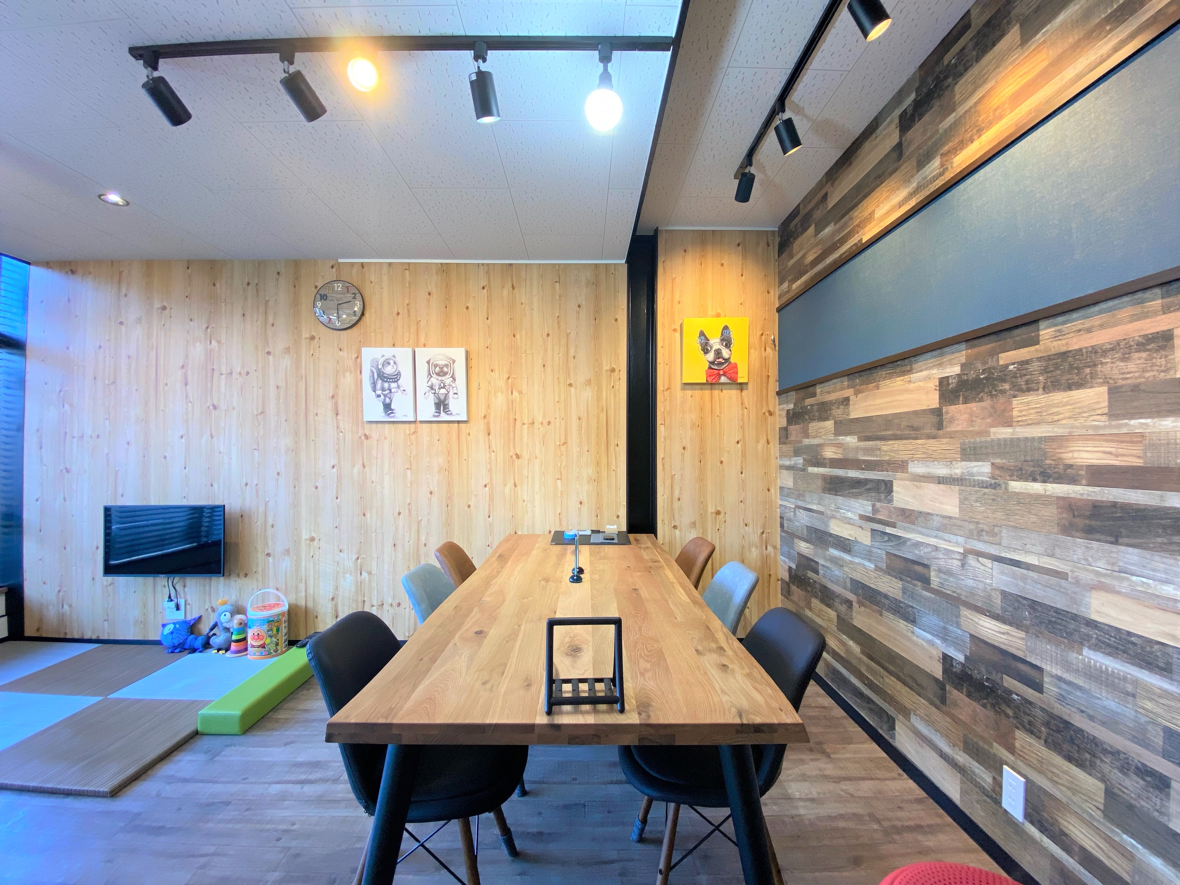 ウッド調の壁や床が温もりとナチュラルさを感じさせプライベート空間も圧迫される事無く完備されているので長時間の打ち合わせも老若男女問わず快適に過ごせると思います。