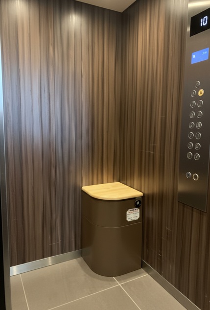 一度は目にしたことのあるエレベーターの中に椅子。