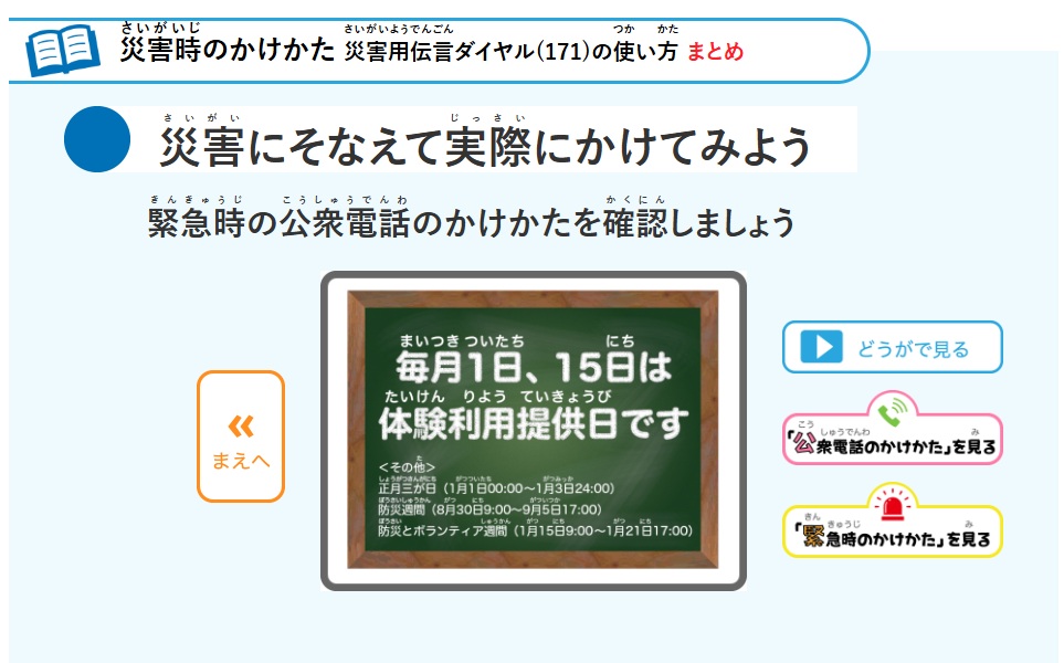 『171』災害伝言ダイヤルはあまりなじみがなく面倒なのかと思いましたが体験利用できる日があるみたいなので練習にはとてもいいかもしれません