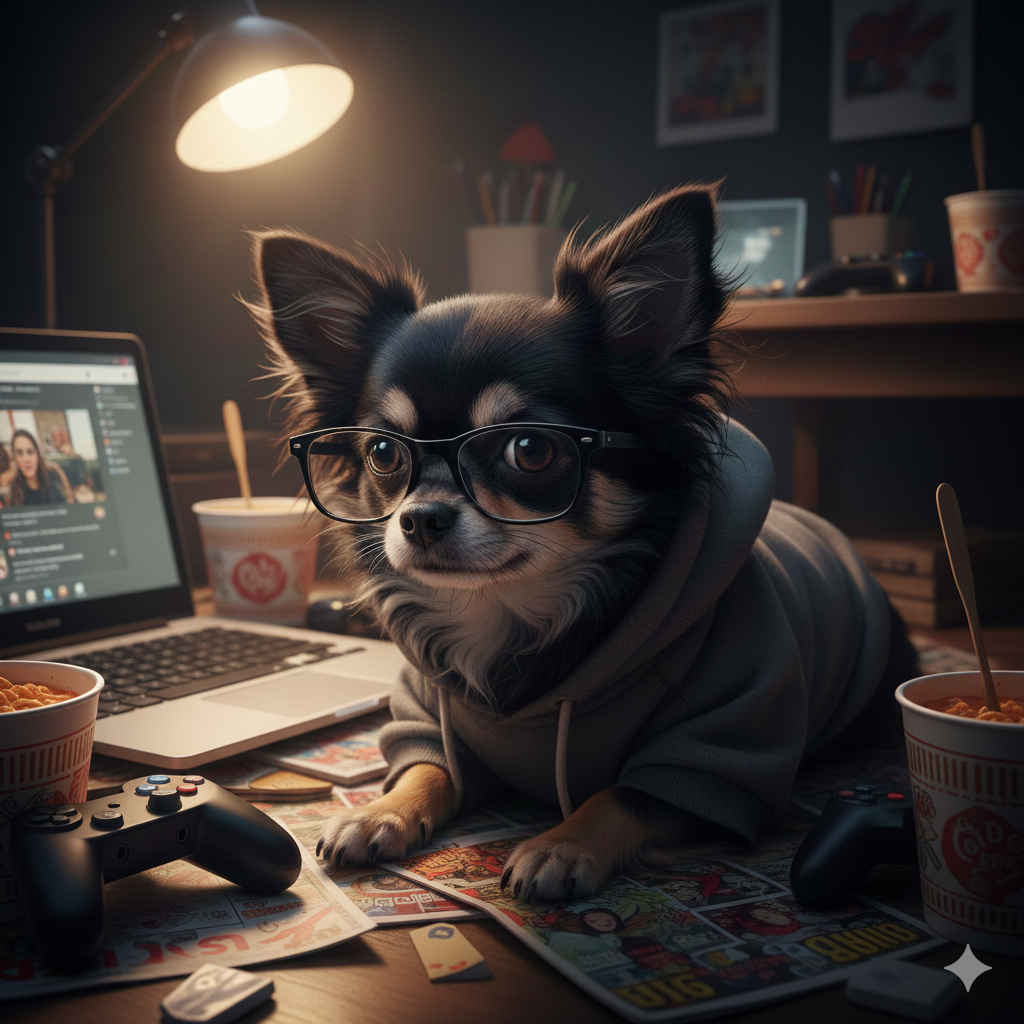 この子は些細なことは気にしません。動きません・動じません。気が向かなけれが振り向きもしません。聞こえてないふりが特技です。食に関して繊細で食べたくないものは絶対に口にしません。突如始まるでダッシュで近くにいるチワワをなぎ倒します。家の中で最重量です。人間と犬が苦手です。