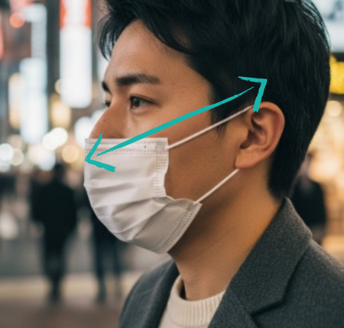 ただですね、関Gucciさんは普通サイズだと鼻が高いので耳からの距離と鼻の高さで耳もとがキツくなっちゃうんです。