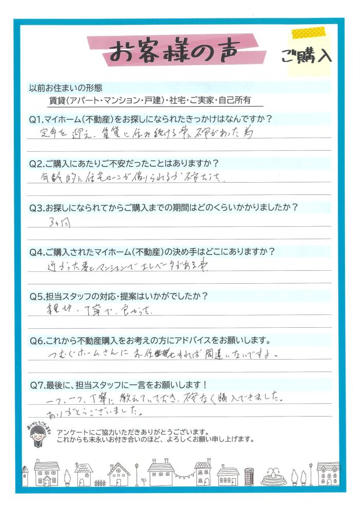 ~一つ一つ丁寧に教えていただき、不安なく購入できました。~ \東大和市 マンション ご購入 Y様/